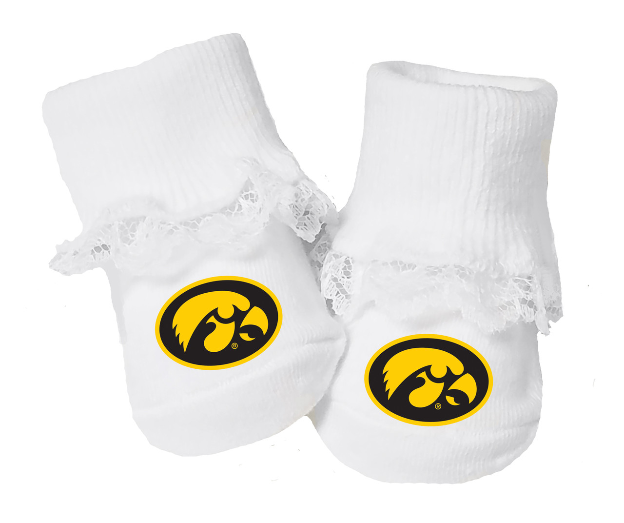 Iowa Hawkeyes Baby Toe Booties with Lace